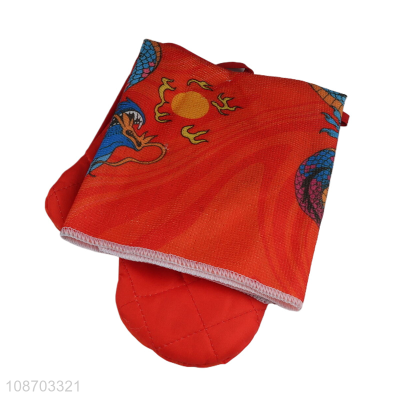 Factory price 3pcs kitchen oven mitt pot holder and cleaning cloth set