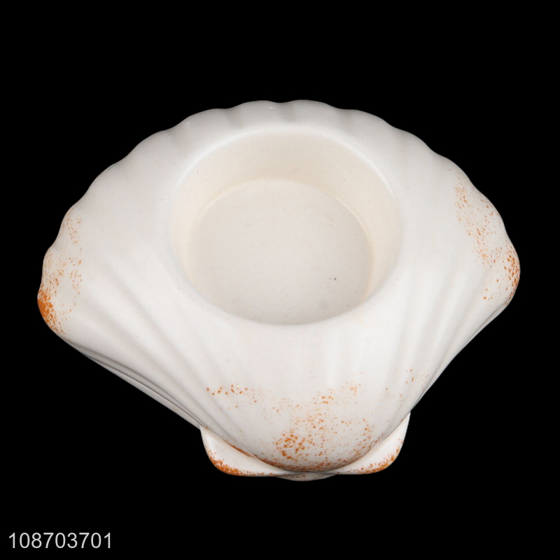 New product ceramic seashell candle holder ocean style ceramic candlestick
