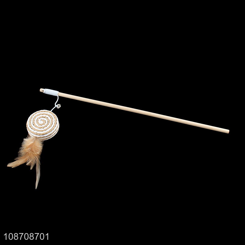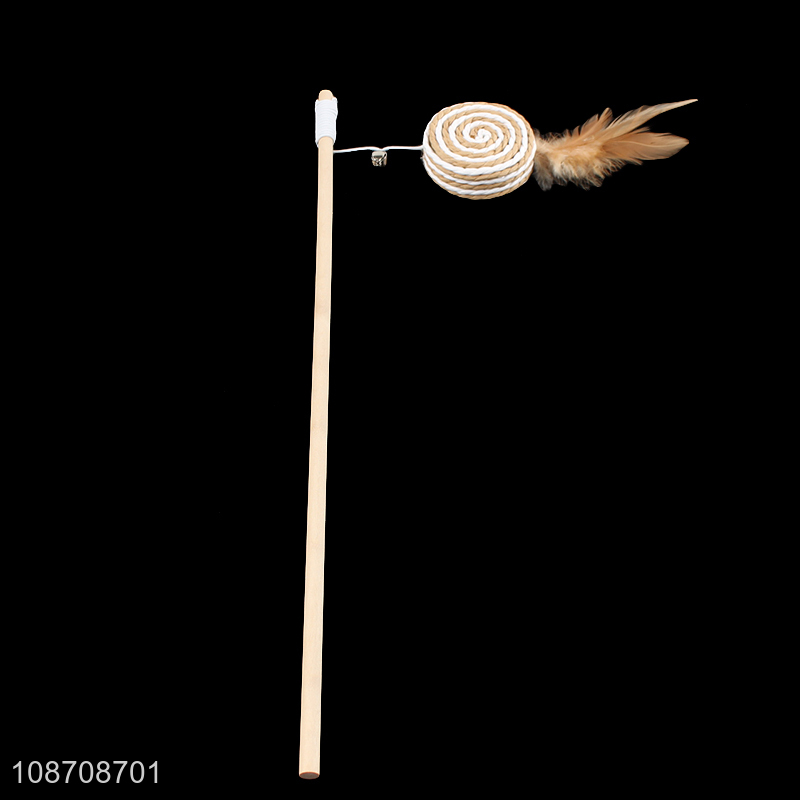 Best quality interactive wooden stick hemp rope cat teaser toys
