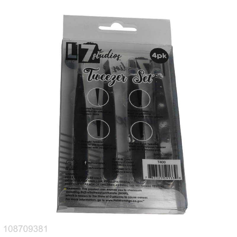 Wholesale 4pcs stainless steel eyebrow tweezers for facila hair removal