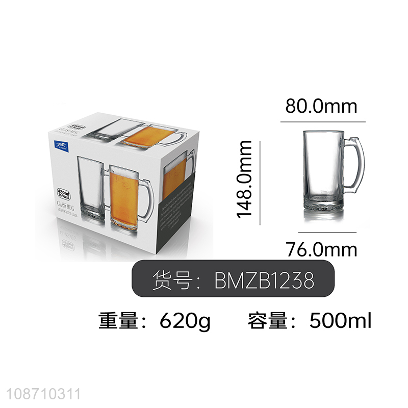 Online wholesale 500ml clear glass water cup beer mug with handle