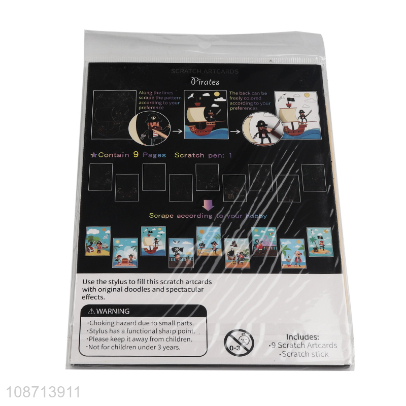 New arrival cartoon pirates children diy scratch art card painting toys
