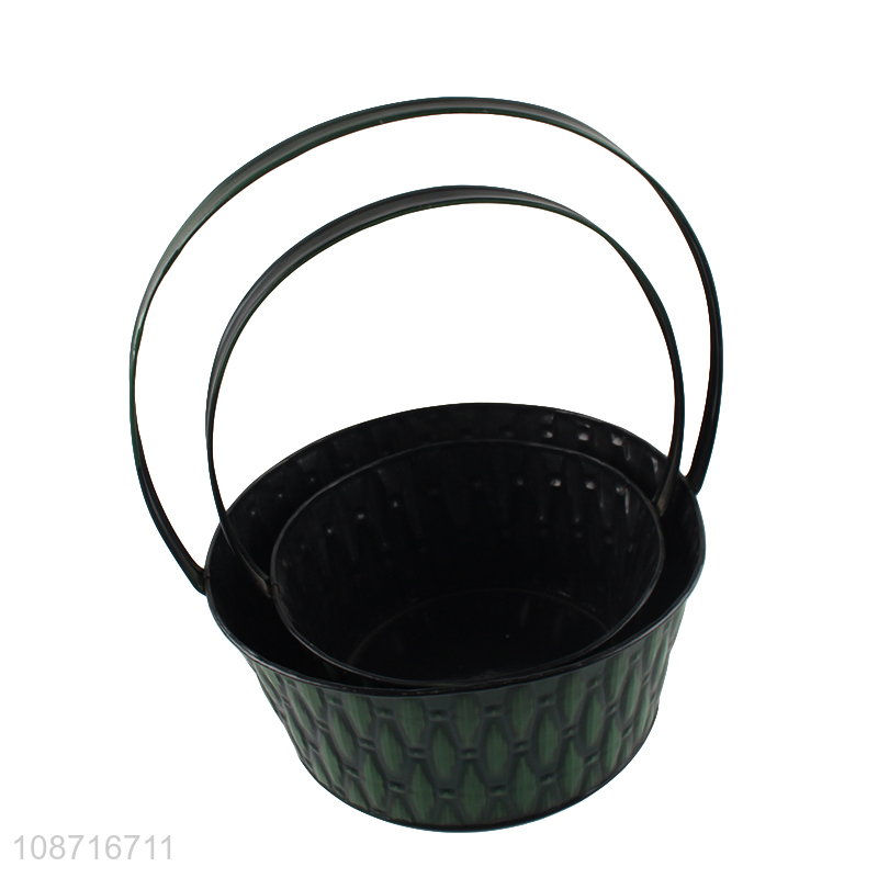 Good price garden decoration galvanized metal flower pot with handle