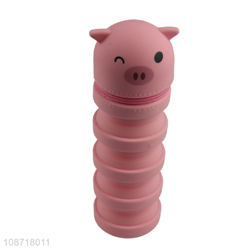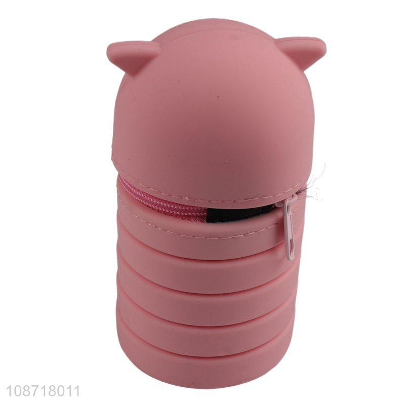 Wholesale cute cartoon silicone retractable pencil case pen bag kids stationery