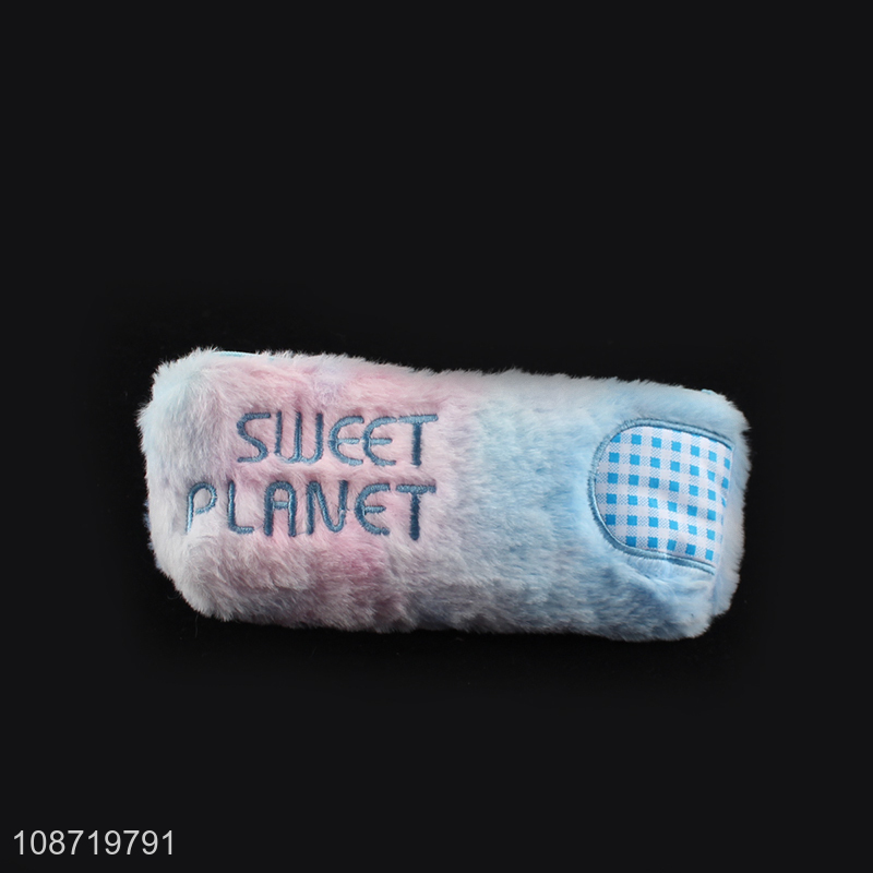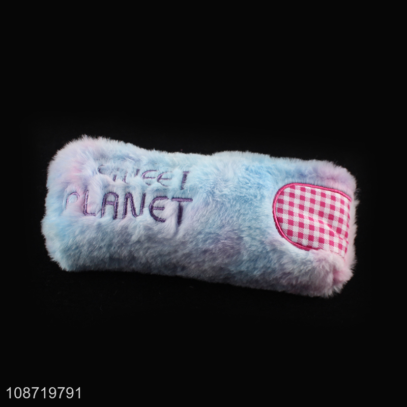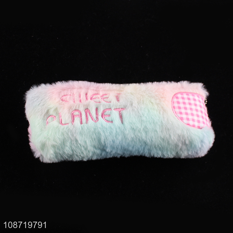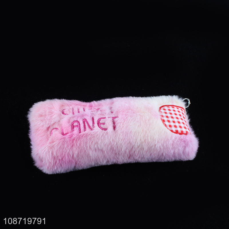 New product large capacity embroidered plush pencil bag fluffy pencil pouch