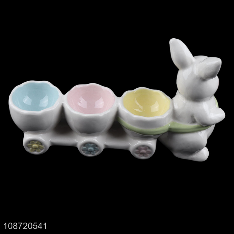 Top selling decorative rabbit ceramic egg storage rack egg tray wholesale