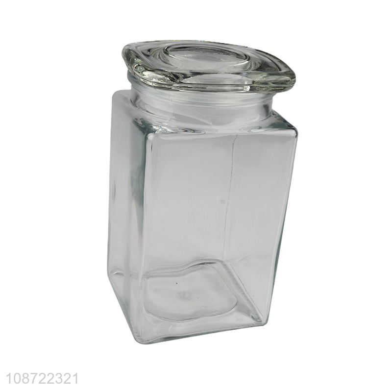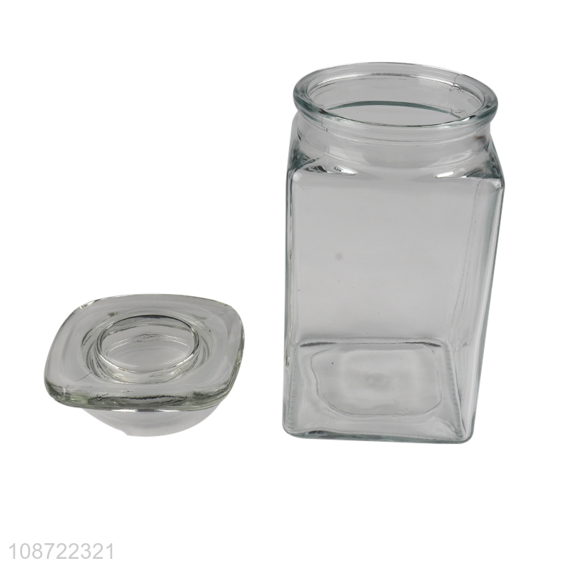 Online wholesale square clear glass food container candy snack storage jar