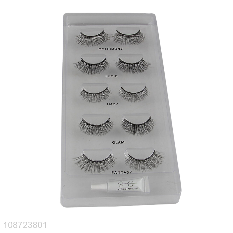 Good quality natural false eyelashes set with eyelash adhesive
