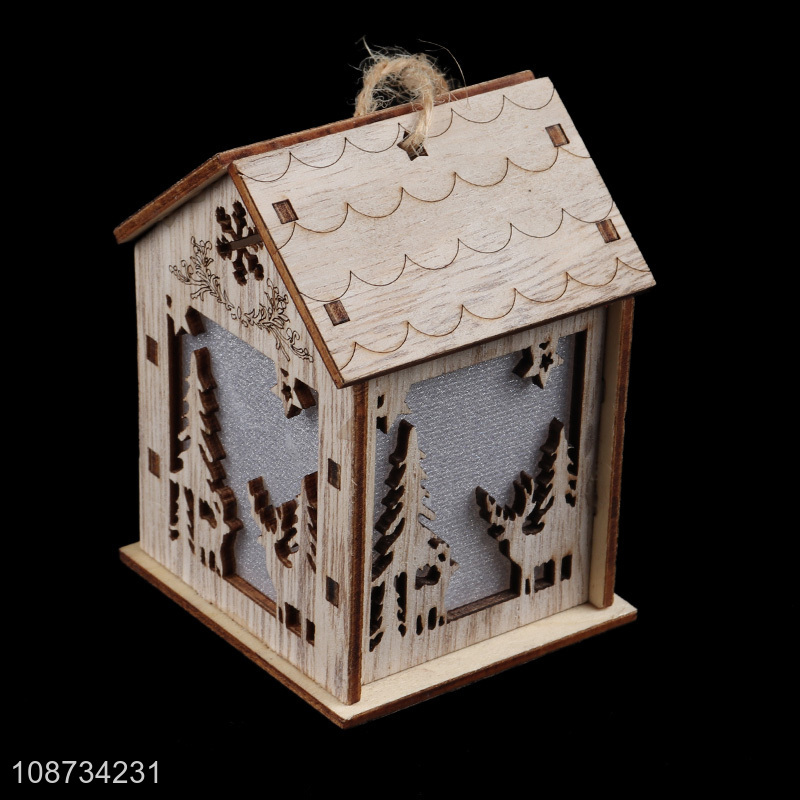 Popular product led light wooden house Christmas tree hanging ornaments