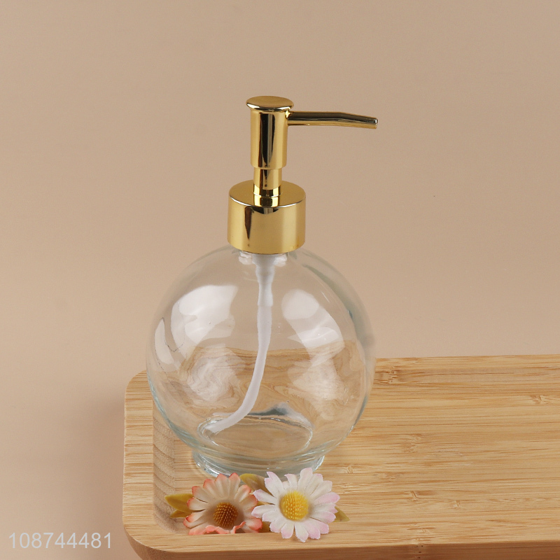 Factory price clear round glass liquid soap dispenser bottle for bathroom accessories