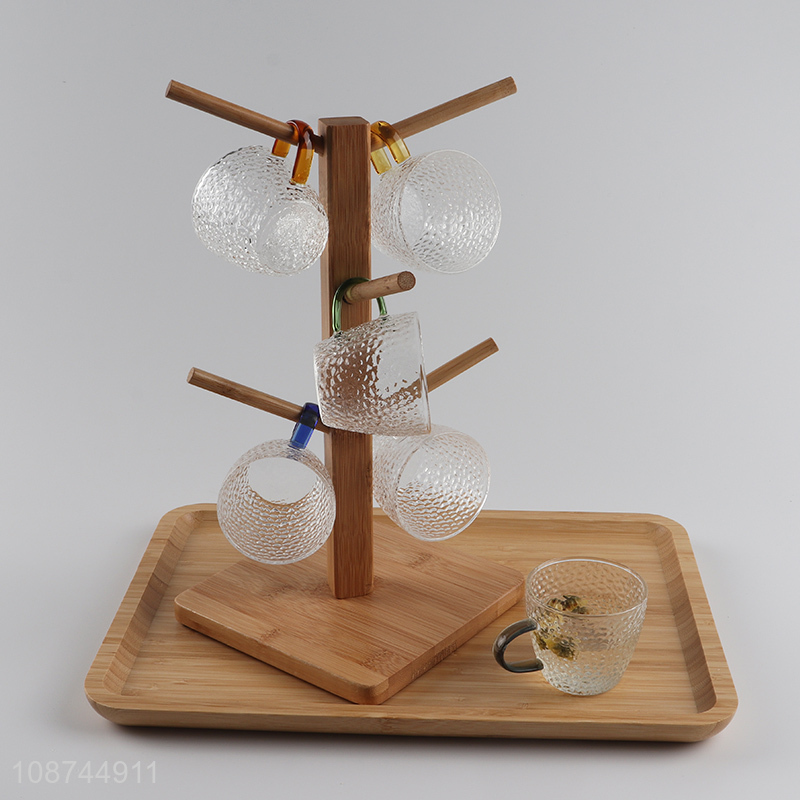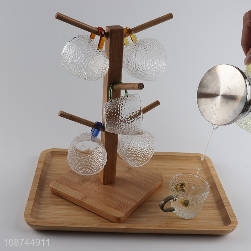 Wholesale textured glass cup glass juice cup water cup with handle