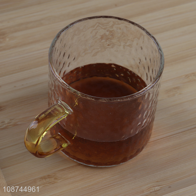 China supplier durable textured glass coffee mugs tea cup with handle
