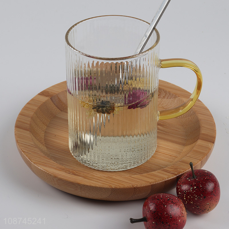 Hot selling glass drinkware ribbed glass coffee mug with handle