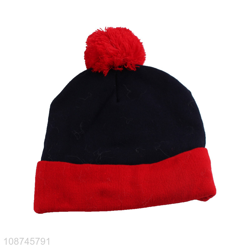 Wholesale women winter jacquard knitted beanie pompom beanie hat
