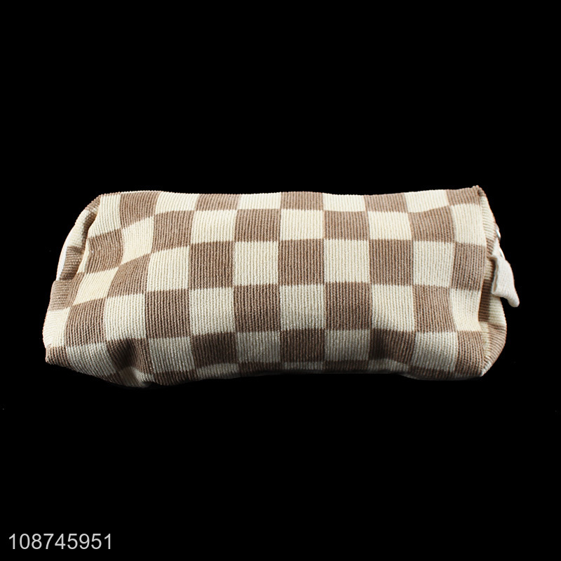 New product check pattern zippered cosmetic makeup bag for women girls