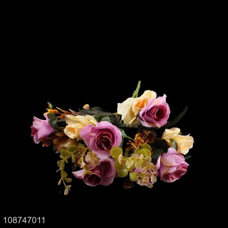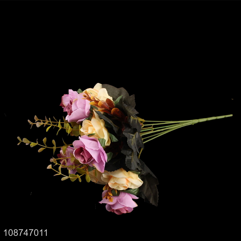 Wholesale 6 branch 12 head artificial flower bi-color rose for wedding decor