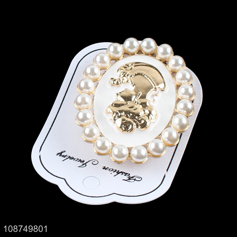Hot selling queen head brooch pin vintage elegant pearl brooch pin