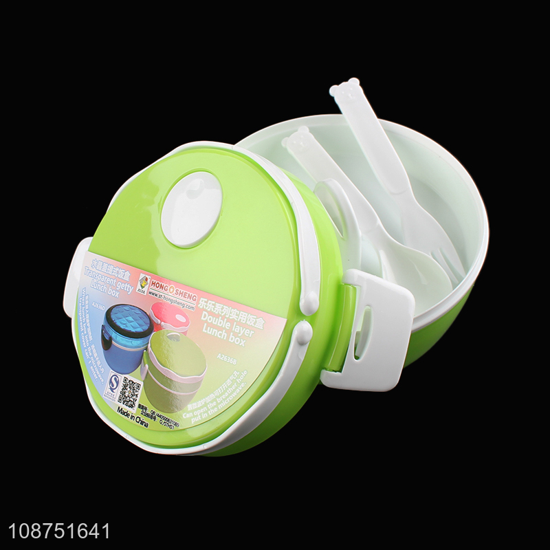 Wholesale double layered plastic bento box food container with spoon & fork