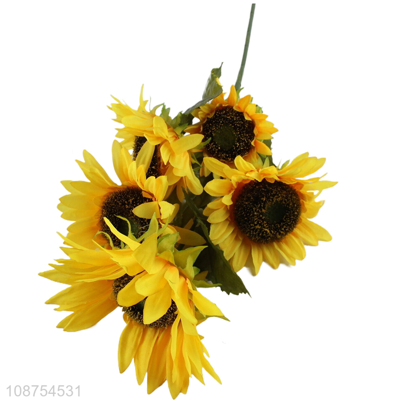 Wholesale 5-head artificial flower long stem faux sunflower for home decor