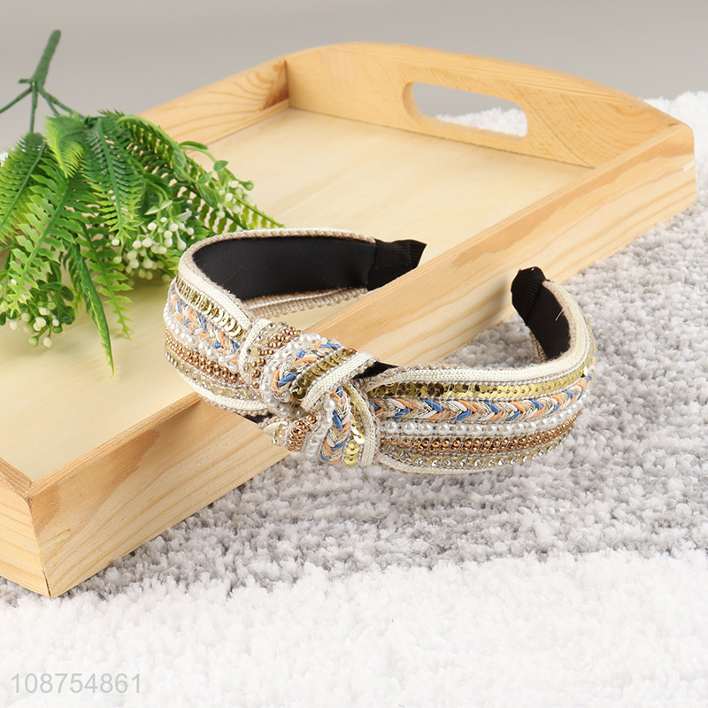 New product luxury pearl rhinestone headband knotted hair hoop for women