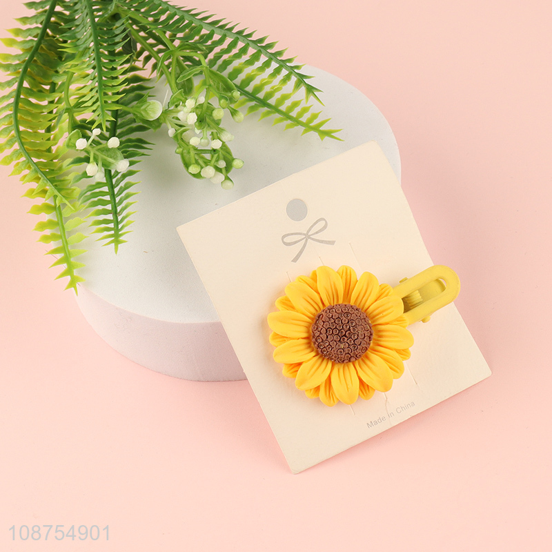 Wholesale cute sunflower hair clips floral alligator harpins for girls
