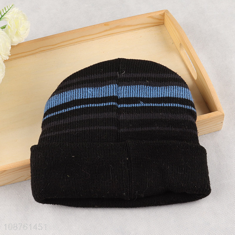 Wholesale striped winter hat fleece lined cuffed beanie for men