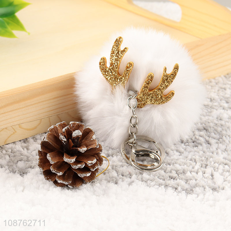 New product cute Christmas pompom key chain faux fur ball keyring