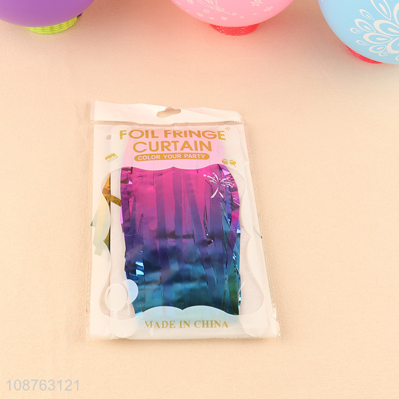Good selling gradient color window door backdrop foil fringe curtain wholesale