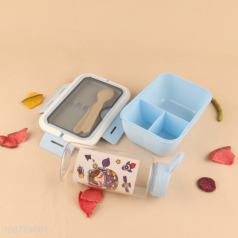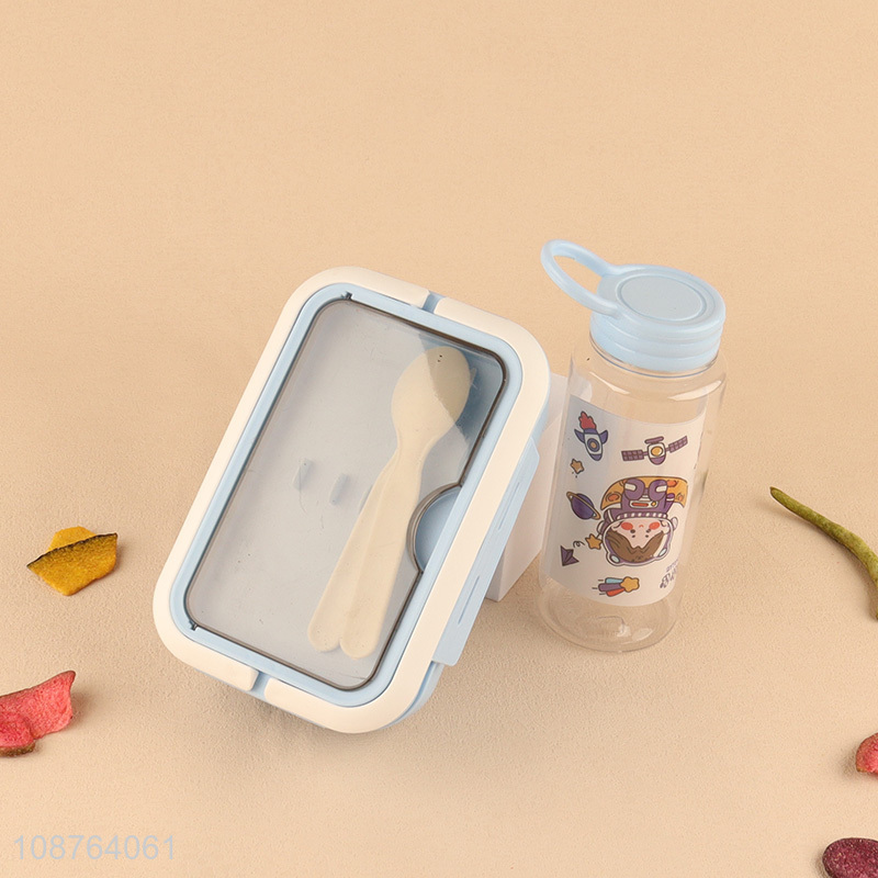 Best price blue portable cartoon water bottle and lunch box set