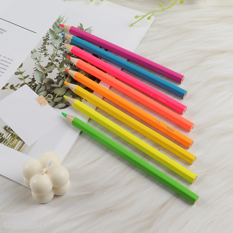 Wholesale 8pcs pre-sharpened fluorescent colored pencils