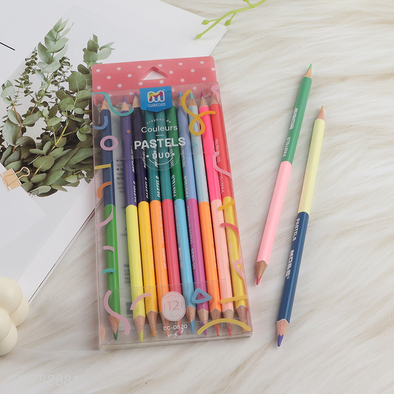 Factory price 12pcs 24 color double ended colored pencils