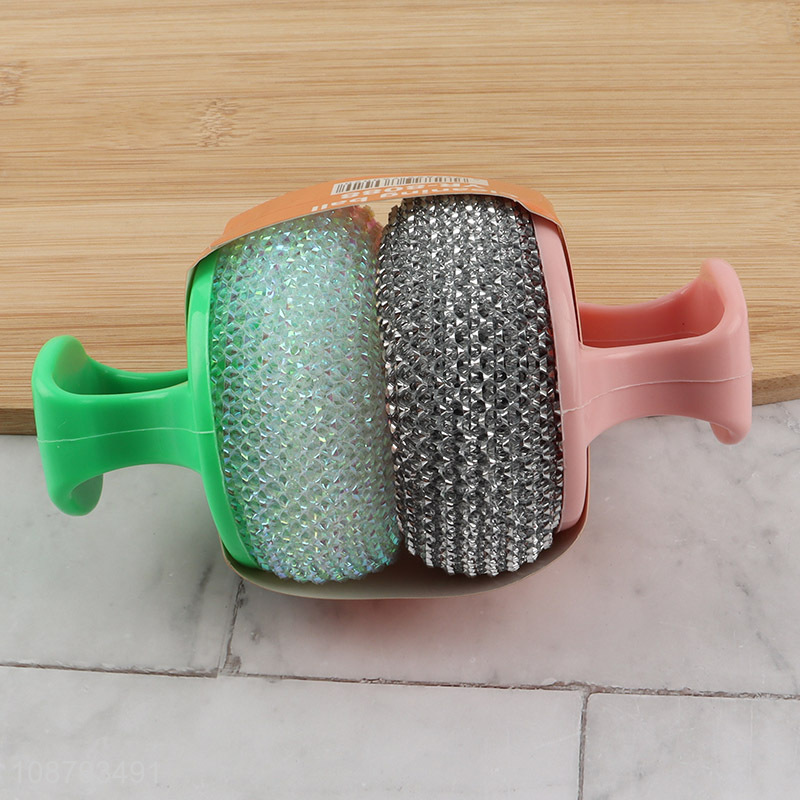 New product 2pcs stainless steel wool scrubbers with handle