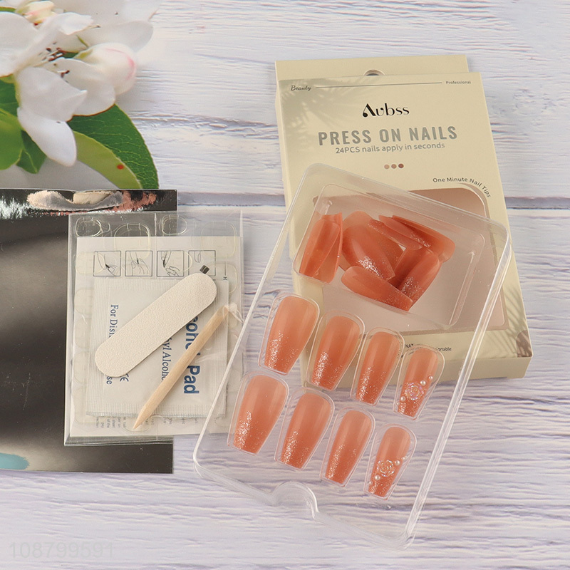 Good quality 24pcs press on false nails with nail glue