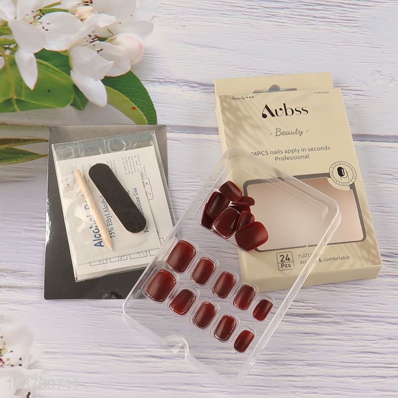 New product 24pcs press on false nails with nail glue