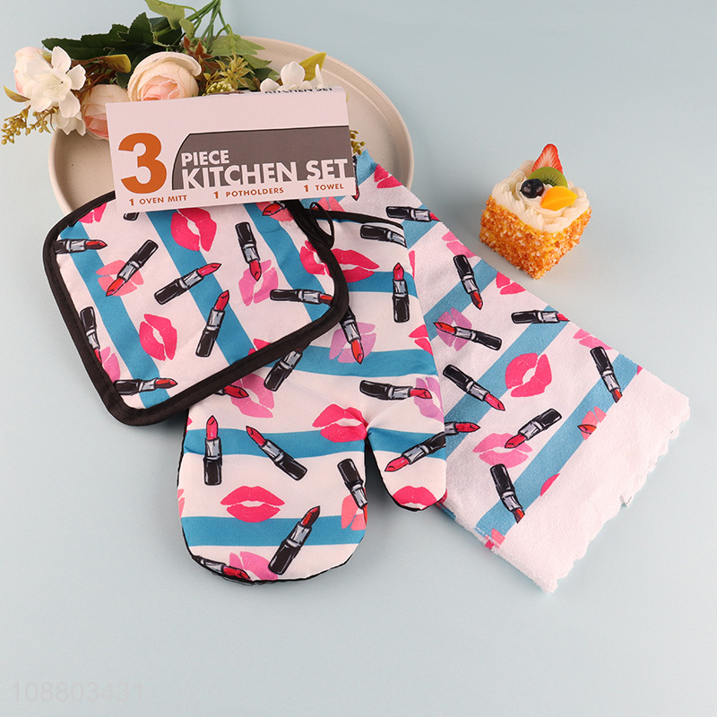 New product 3pcs oven mitt pot holder and dish towel set