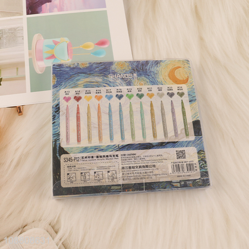 Wholesale 12 colors non-toxic acrylic paint markers for rock painting