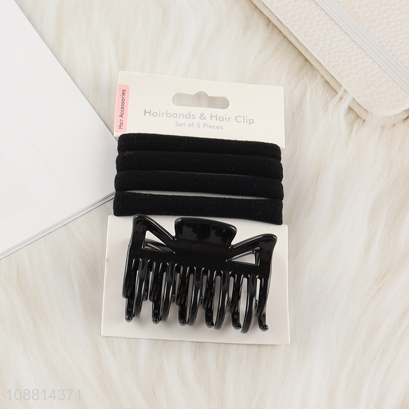 Wholesale 5pcs/set elastic hair bands and plastic hair claw clip