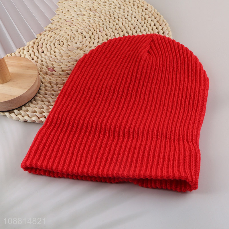 Factory supply red winter thickened knitted hat for sale