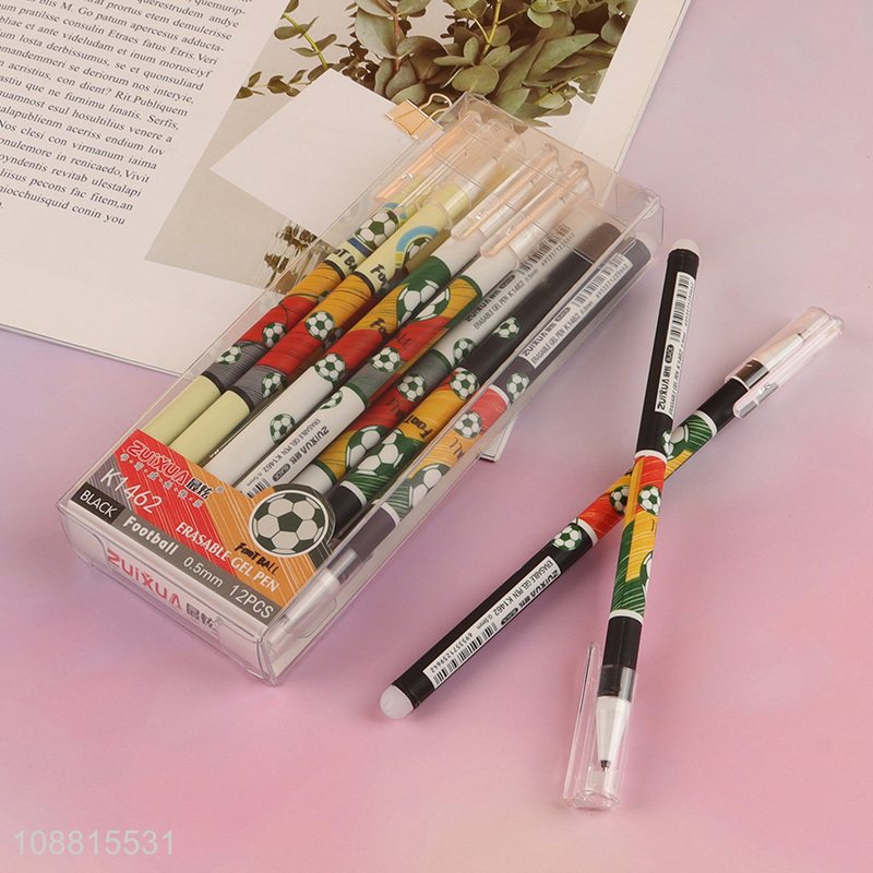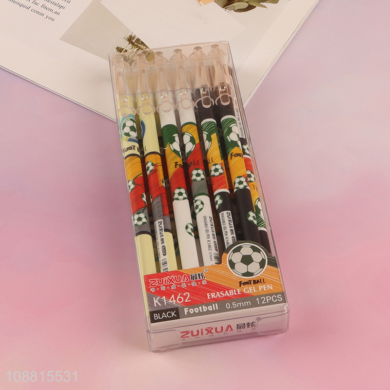 Good quality 12pcs football printed black ink erasable gel pens
