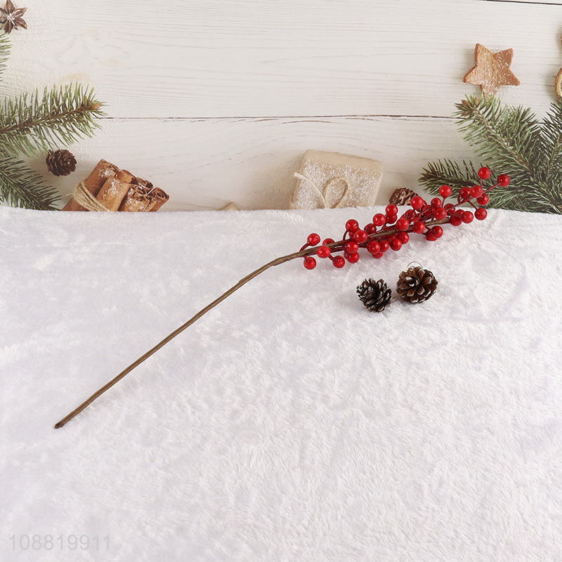 Wholesale 5-branch artificial red berry stem for Xmas tree deocr