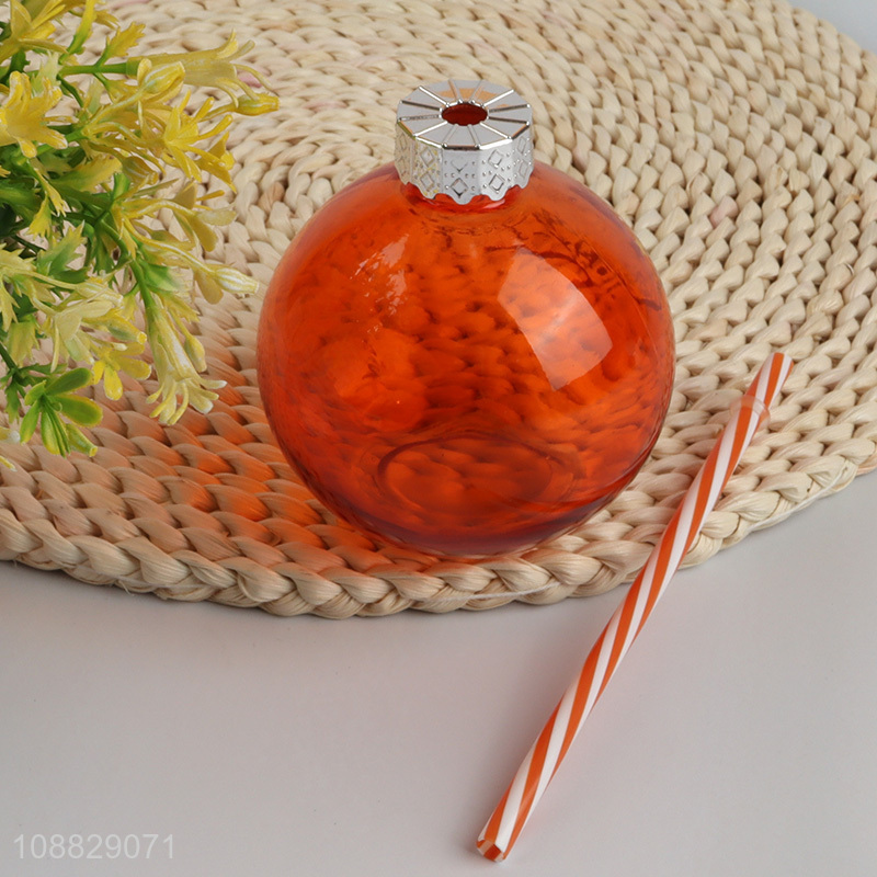 Hot selling reusable glass Christmas bulb cup with lid & straw