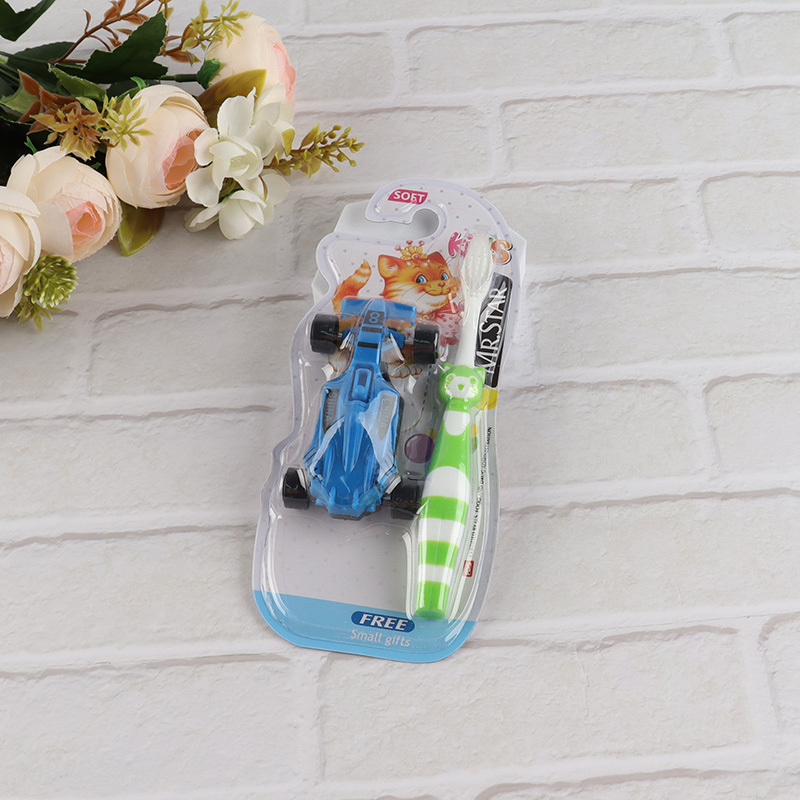 China supplier cartoon children soft toothbrush with toy car