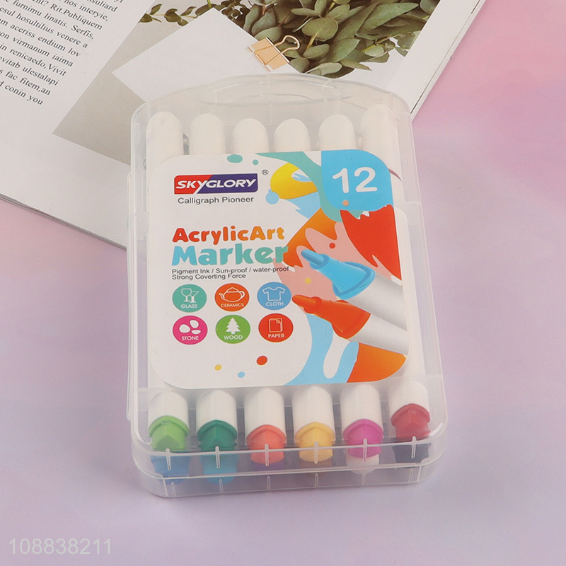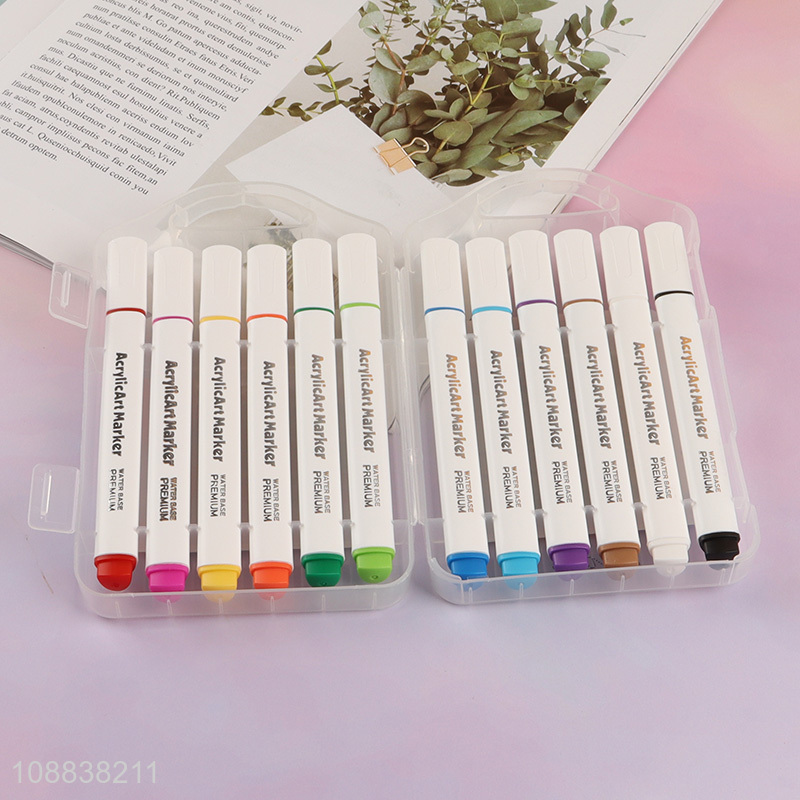 Wholesale 12 colors acrylic paint markers for stone paper cloth
