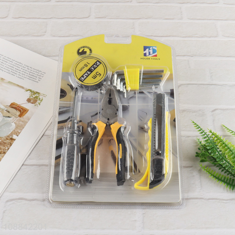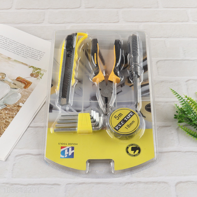 Hot selling home tool kit with pvc tape, hex key set, screwdriver, plier & utility knife