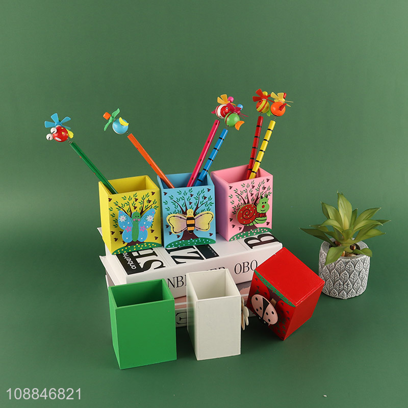 China factory cartoon wooden students pen holder for sale