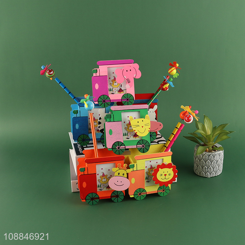 Good price cartoon colorful wooden students pen holder