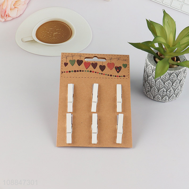 Best selling 6pcs heart shape wooden clip photo clip