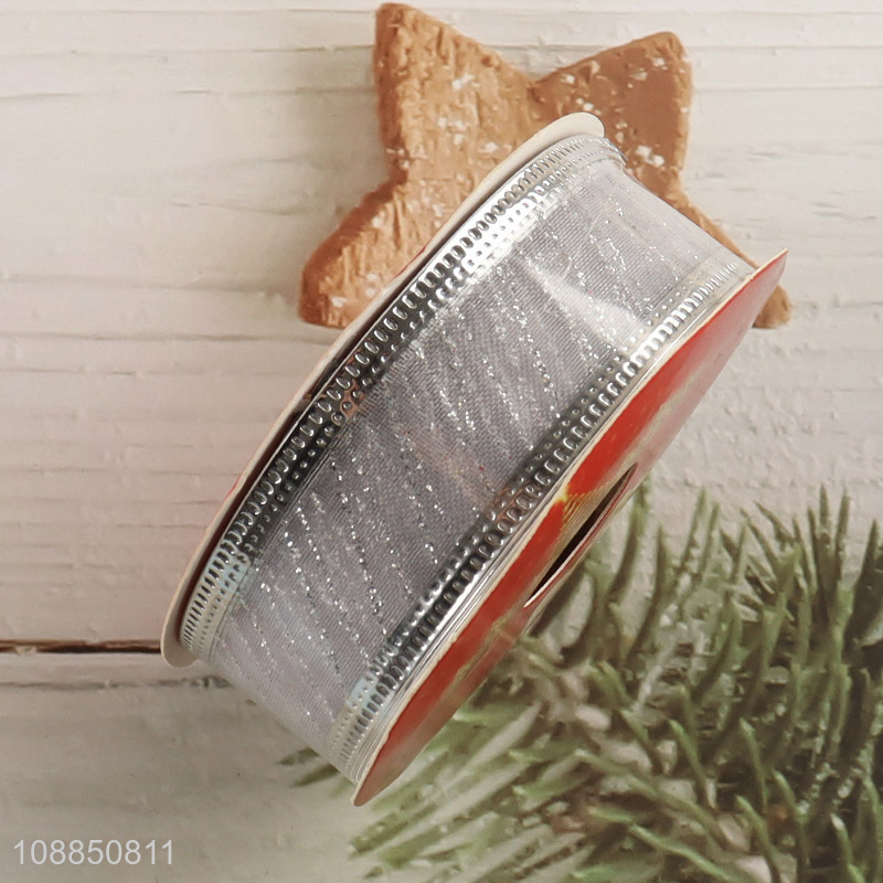 Wholesale silver Christmas ribbons wired ribbons for gift wrapping