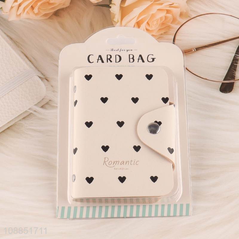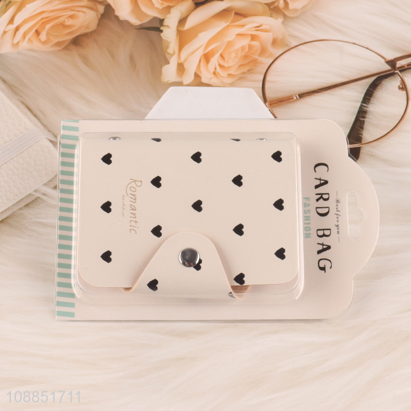Online wholesale card bag heart printed pu leather card holder