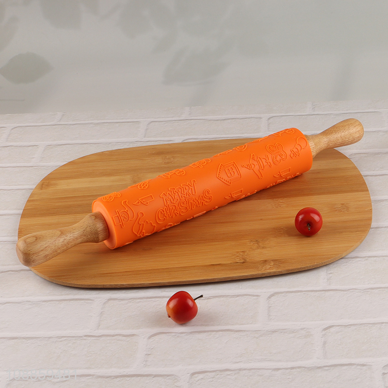 Best selling christmas cookie embossing rolling pin for kitchen